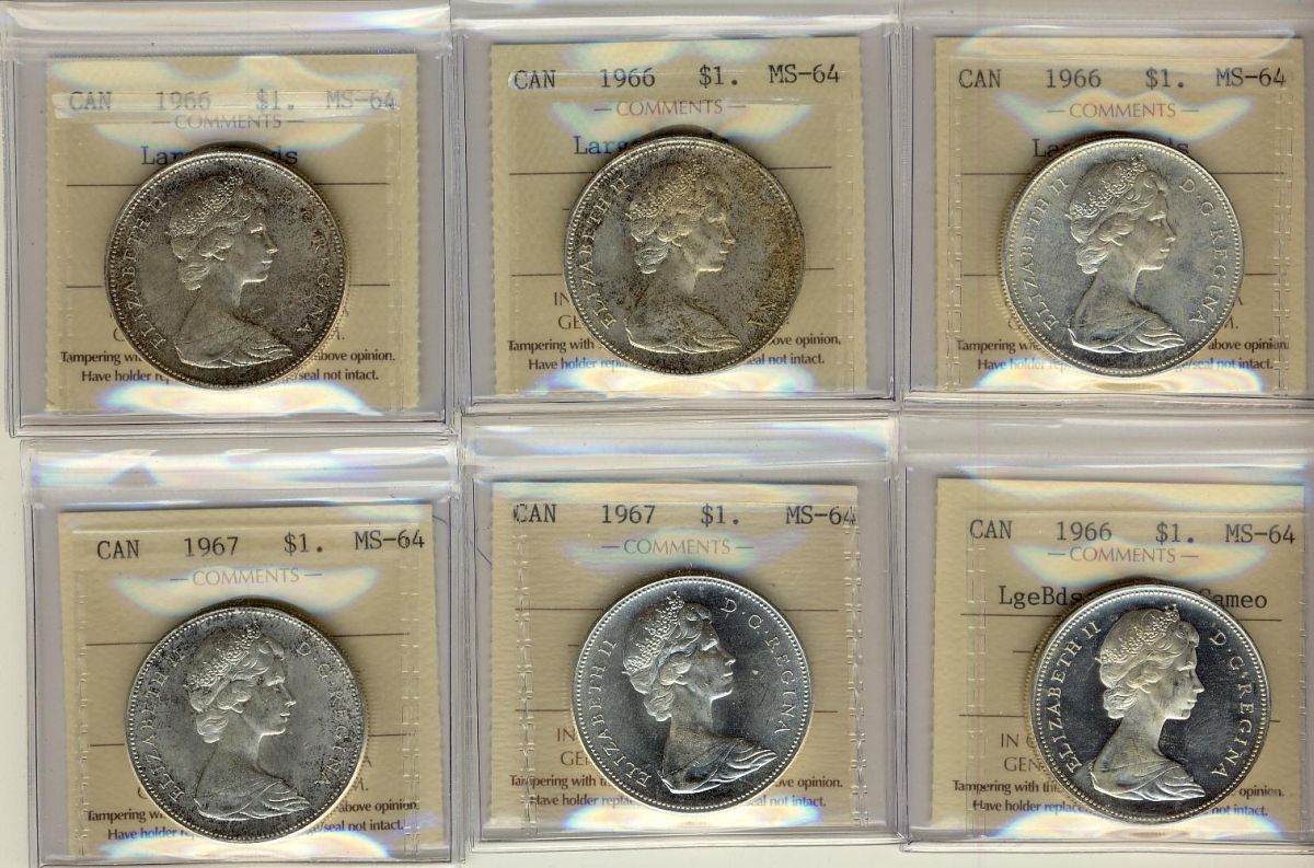 1966(4) and 1967(2) $1 ICCS MS64. Lot of 6 coins.