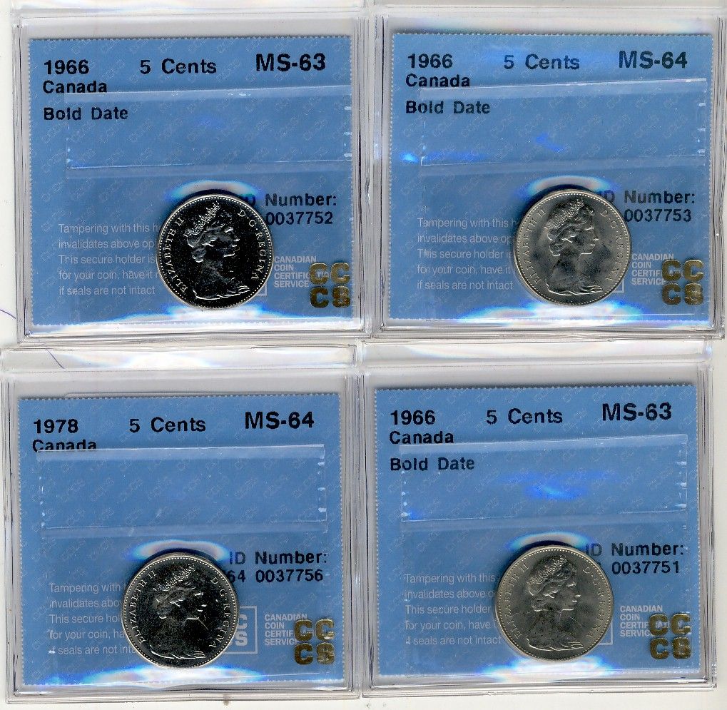 1966 5 Cents MS63(2), MS64 and 1978 MS64; 4 Coins all CCCS.