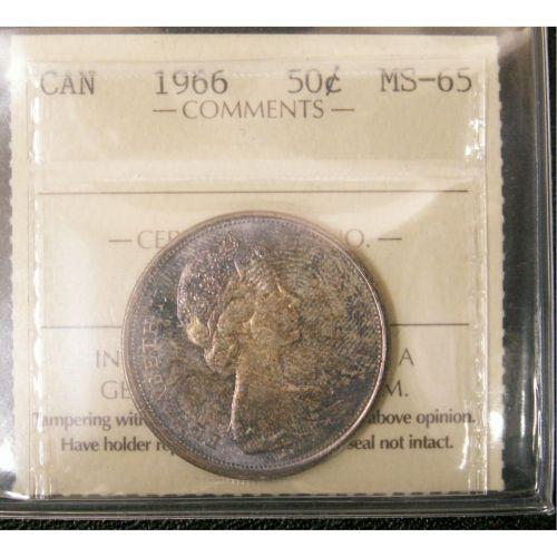 1966 50¢ ICCS MS65. Another gem coin with beautiful toning and eye appeal.