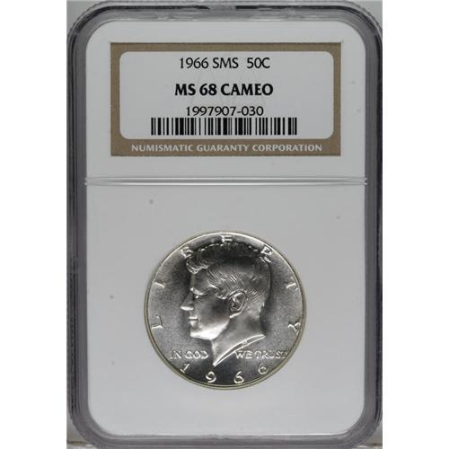 <B>1966 50C SMS MS68 Cameo NGC.</B></I> NGC Census: (44/3). PCGS Population (11/0). (#86846)<BR><BR><b>Shipping:</b> Coin/Currency (<a target="_blank" href="http://www.heritageauctions.com/common/shipping.php">view shipping information</a>)