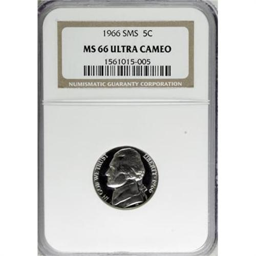 <B>1966 5C SMS MS66 Deep Cameo NGC.</B></I> NGC Census: (8/9). PCGS Population (0/0). (#94198)<BR><BR><b>Shipping:</b> Coins & Currency (<a target="_blank" href="http://www.heritageauctions.com/common/shipping.php">view shipping information</a>)