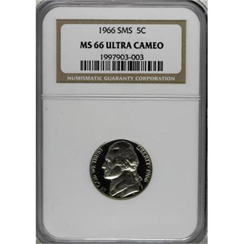 <B>1966 5C SMS MS66 Deep Cameo NGC.</B></I> NGC Census: (9/9). PCGS Population (13/10). (#94198)<BR><BR><b>Shipping:</b> Coins & Currency (<a target="_blank" href="http://www.heritageauctions.com/common/shipping.php">view shipping information</a>)
