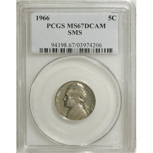 <B>1966 5C SMS MS67 Deep Cameo PCGS.</B></I> PCGS Population (7/1). NGC Census: (7/1). (#94198)<BR><BR><b>Shipping:</b> Coins & Currency (<a target="_blank" href="http://www.heritageauctions.com/common/shipping.php">view shipping information</a>)