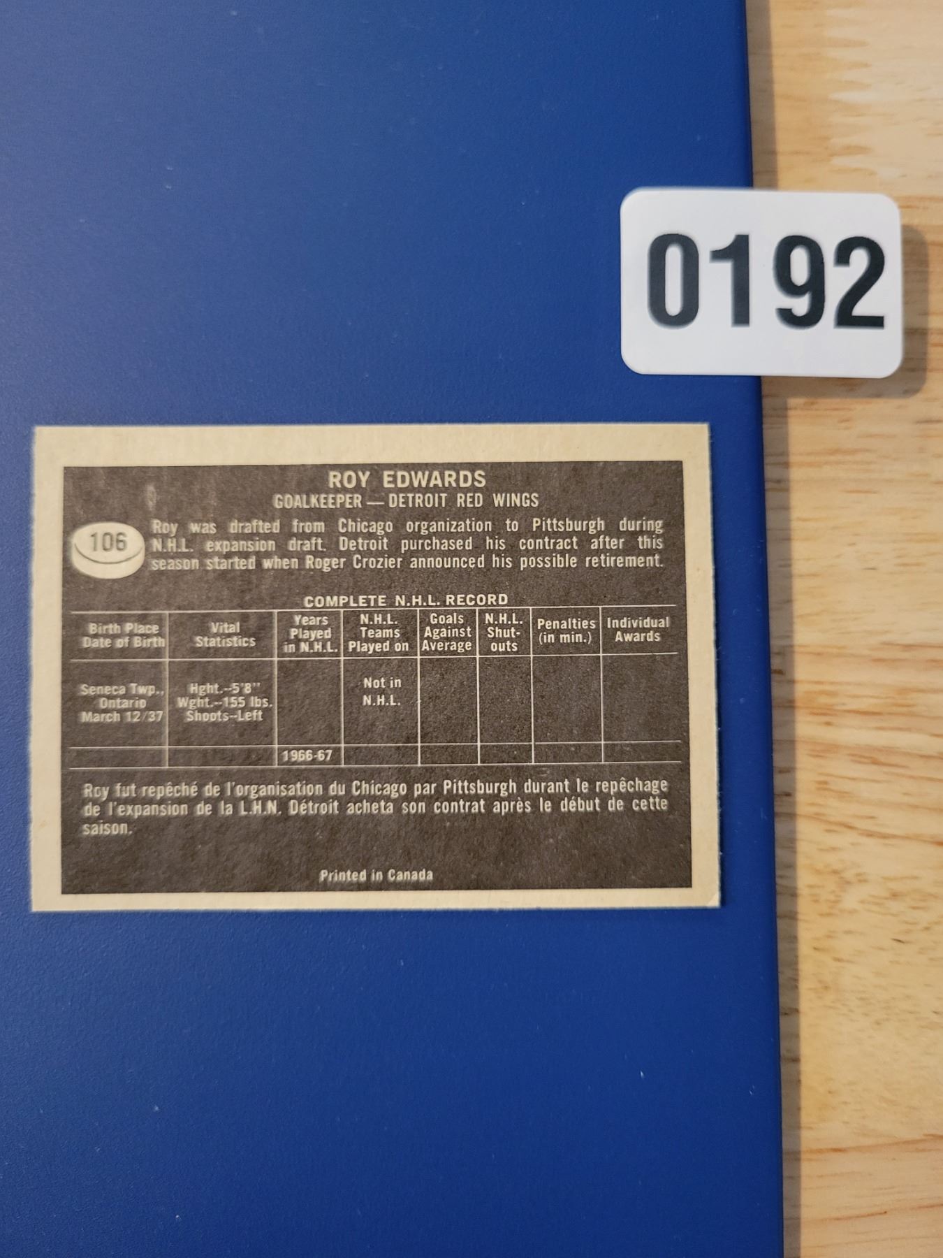 Vintage Hockey Card - Details In Photographs