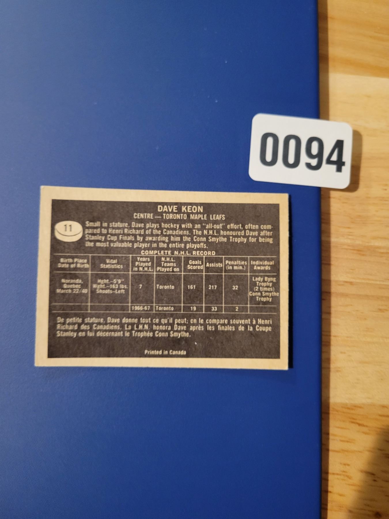 Vintage Hockey Card - Details In Photographs