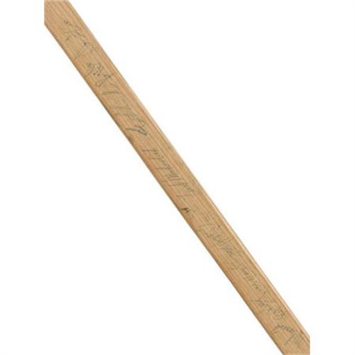 <B>1966-67 Toronto Maple Leafs Team Signed Hockey Stick.</B></I> Despite employing a veteran group of players -- Johnny Bower and Allan Stanley has already eclipsed the 40-year mark -- the 1966-67 Toronto Maple Leafs secured the franchise's thirteenth Stanley Cup with a team average age of 31. This remains as the oldest championship team. Furthering the significance of the team piece, the 1966-67 season marked the last year of the Original Six era, with another six teams added to the NHL in '67 by way of expansion. What we present here amounts to a remarkable vintage memento to mark the Leafs' last Stanley Cup triumph with one of Stanley's game used sticks complete with 15 signatures from the team. Stick retains original taping and has Stanley's name stamped on the shaft. Autographs average 9/10 in strength and include Allan Stanley, George Armstrong (Captain), Mike Walton, Tim Horton, Jim Pappin, Marcel Pronovost, Red Kelly, Bob Haggart, Bruce Gamble, Frank Mahovlich, Ron Ellis, Dave Kech, Terry Sawchuck. <I>LOA from PSA/DNA. LOA from James Spence Authentication.</B></I><BR><BR><b>Shipping:</b> Sportscard (<a target="_blank" href="http://www.heritageauctions.com/common/shipping.php">view shipping information</a>)