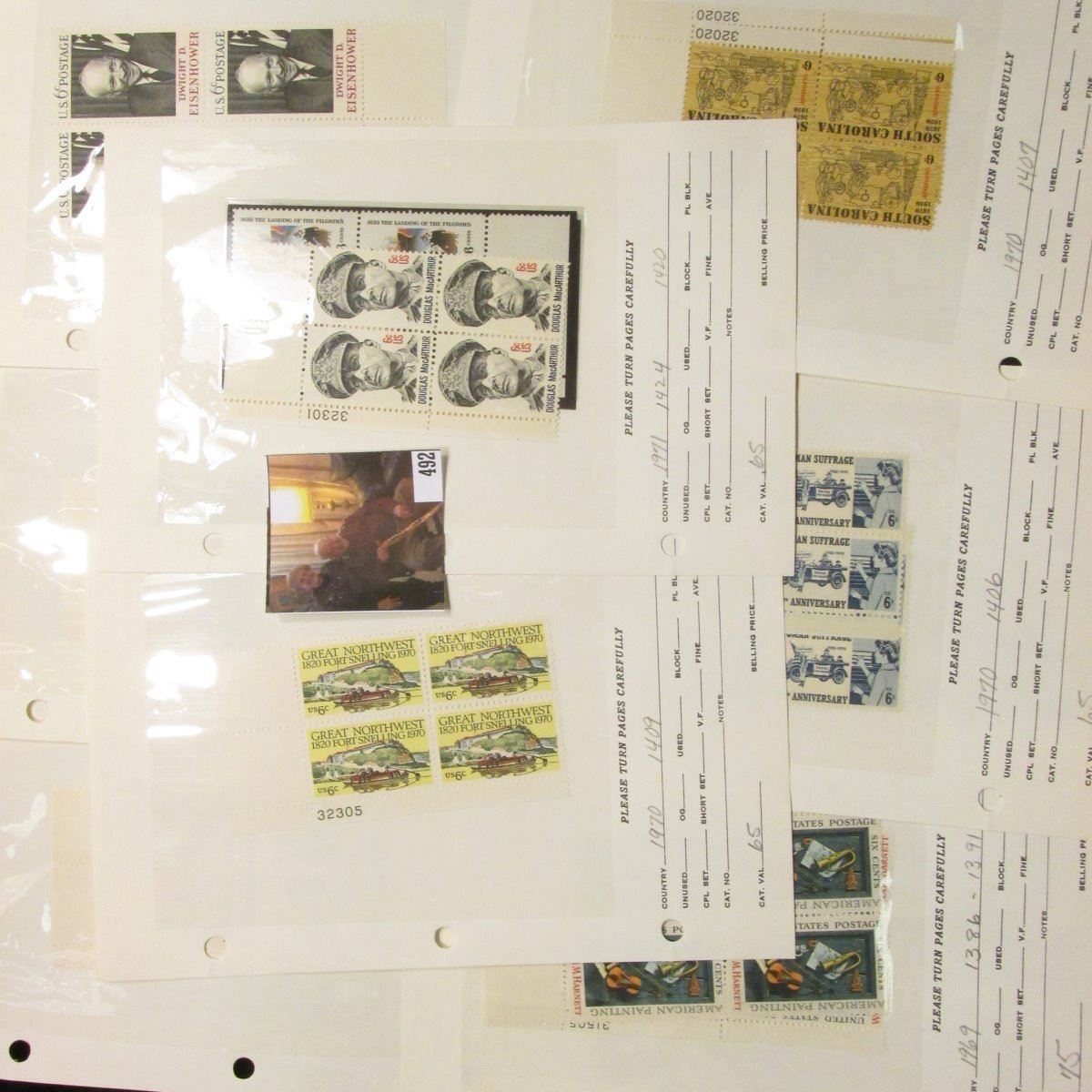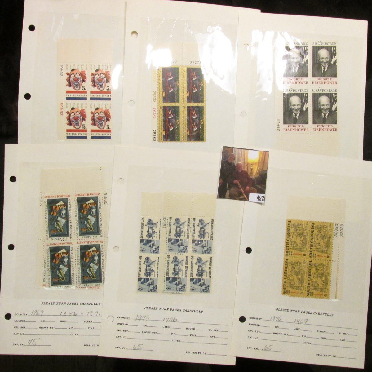1966-71 Plate Blocks of Four Scott # 1309, 1335,1383,1386-1391, pair 1406, pair 1407, 1409, 1420, & 1424.