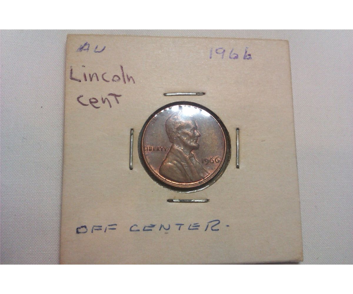 1966 AU **Off Center** Licoln Cent ***Coin, Currency & All Items Listed in this auction - Grades, Conditions and Values are not Safe Deposit Coins LLC Responsibilty. Grades, Condition and Values are determined by Consigner(s) & Buyers ONLY***