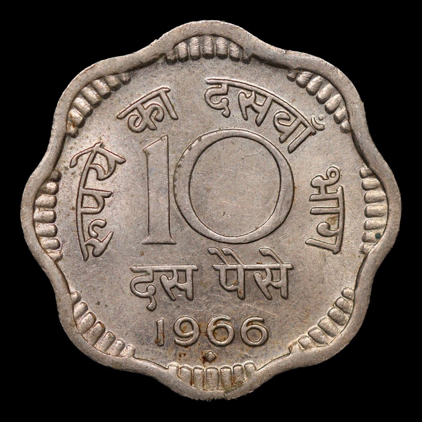 1966(B) India (Republic) 10 Paise KM# 25 Grades Select+ Unc.