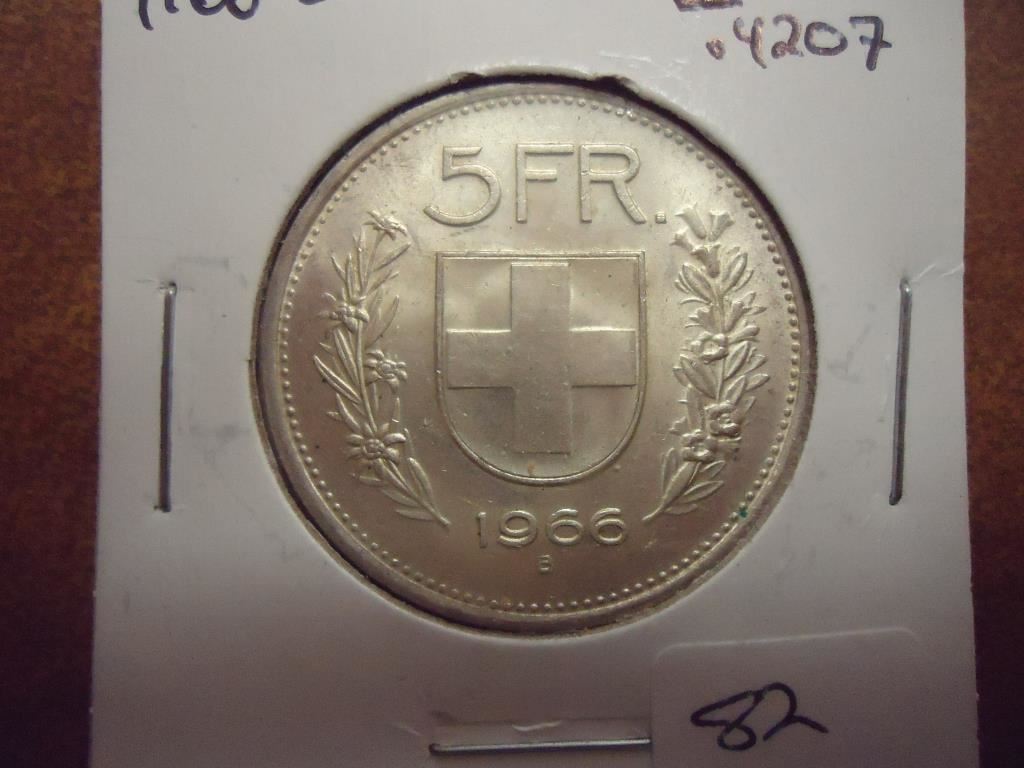 1966-B SWISS SILVER 5 FRANC .4207 OZ. ASW