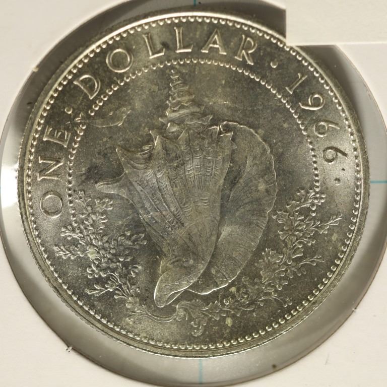 1966 BAHAMAS SILVER $1 COIN .4666 OZ. ASW UNC