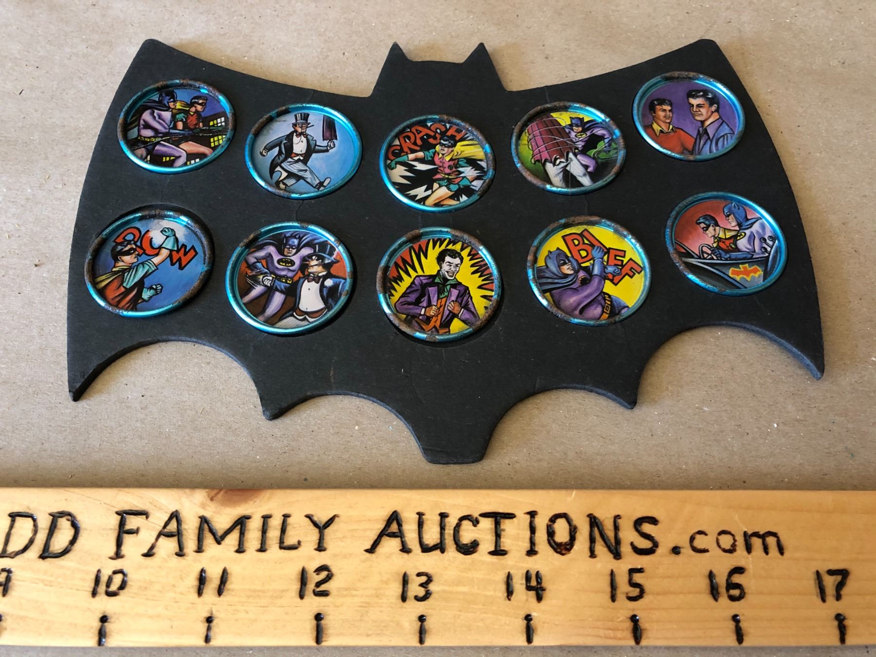 1966 BATMAN COLLECTOR BUTTONS IN DISPLAY
