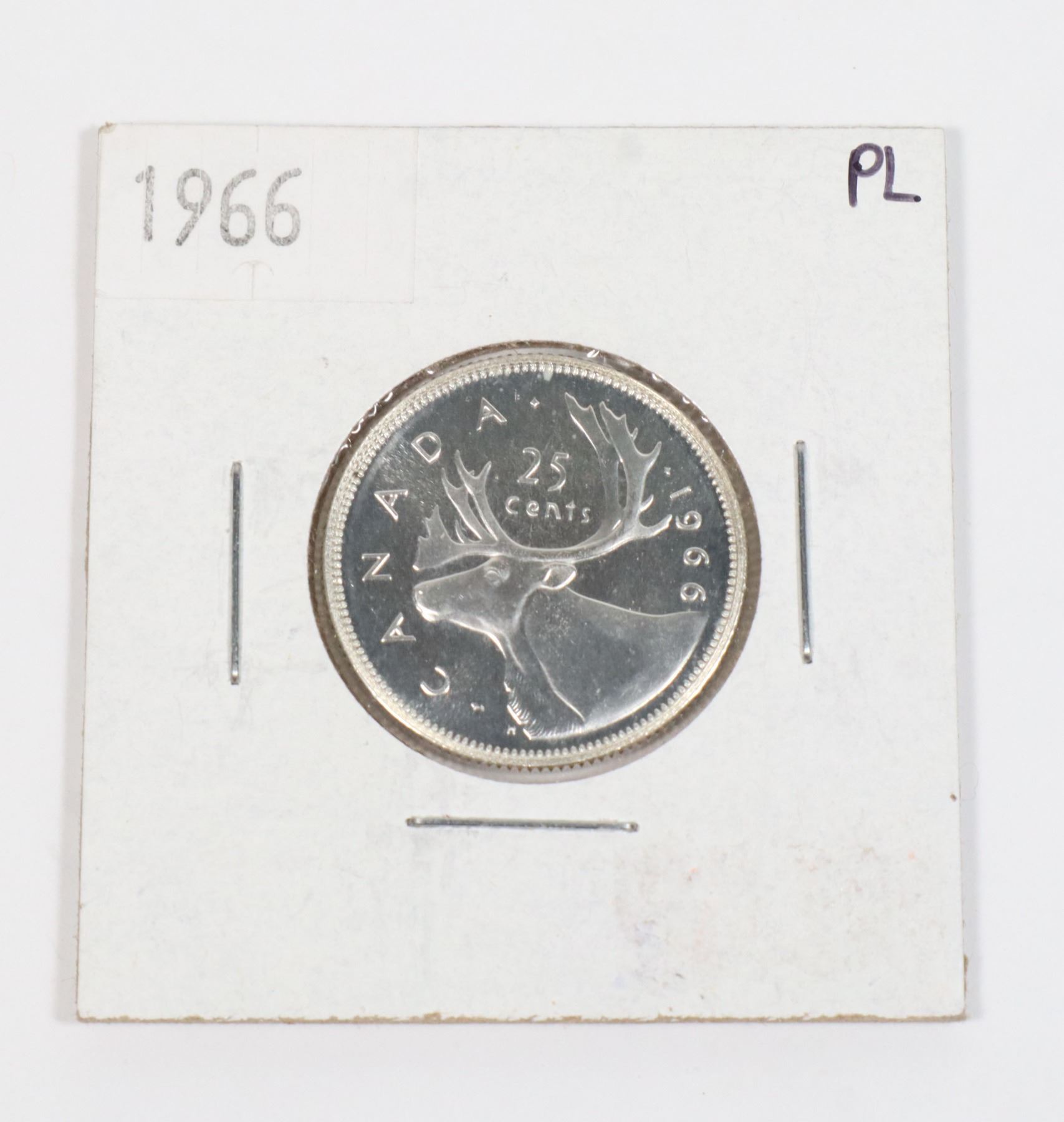 1966 CANADA 25 CENT PROOF LIKE SILVER COIN