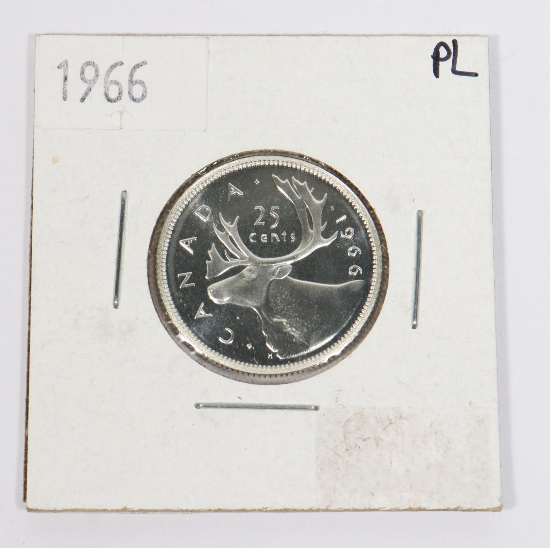 1966 CANADA .25CENT SILVER PROOF LIKE COIN