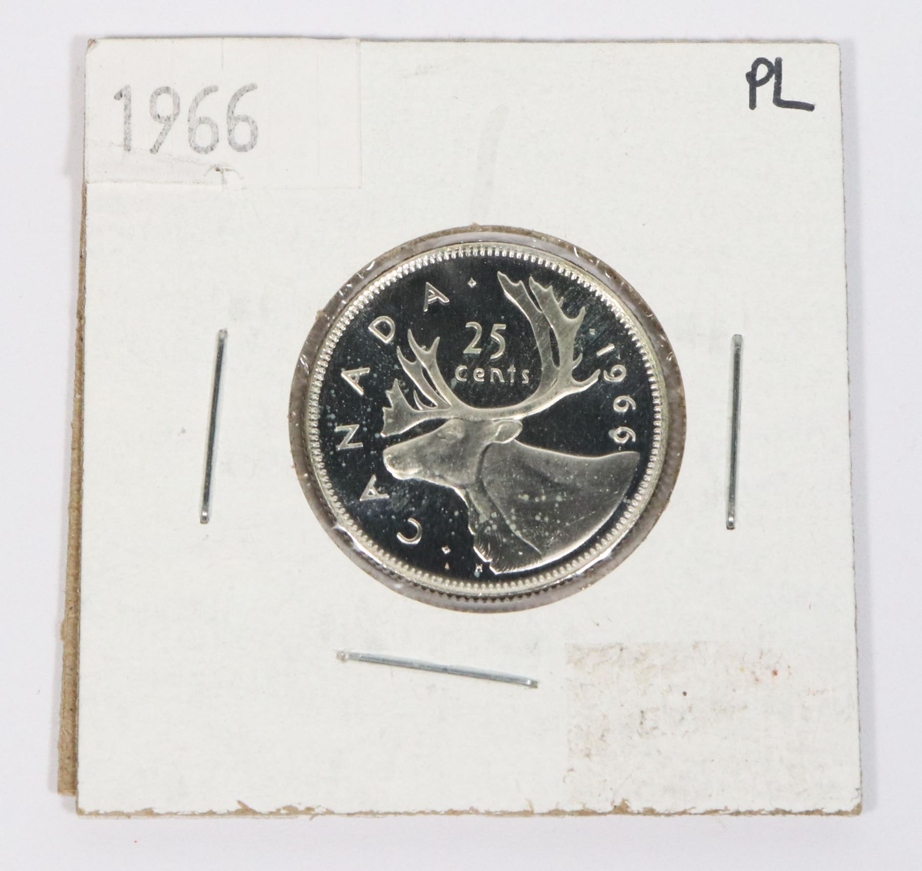 1966 CANADA .25CENT SILVER PROOF LIKE COIN