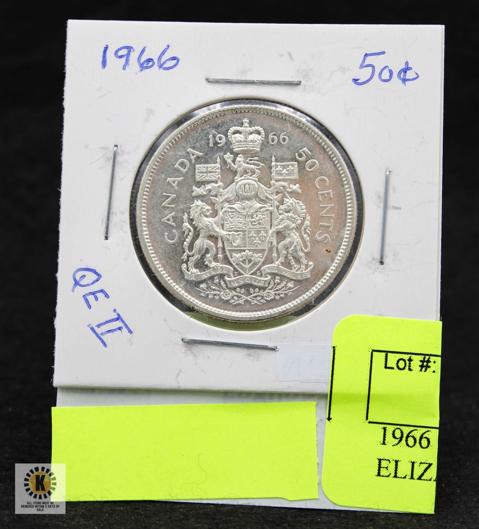 1966 CANADA 50C. QUEEN ELIZABETH 2, CAMEO