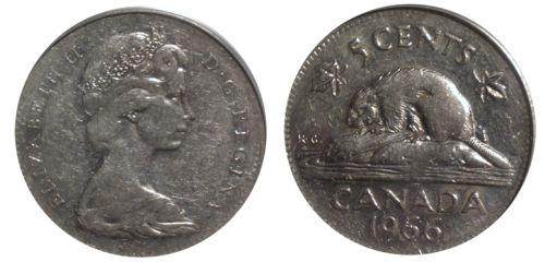 0522 - 1966 Canada 5 Cent Mint Error-PCGS AU55