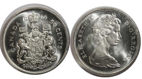 1966 Canada Fifty Cents-ICCS MS65