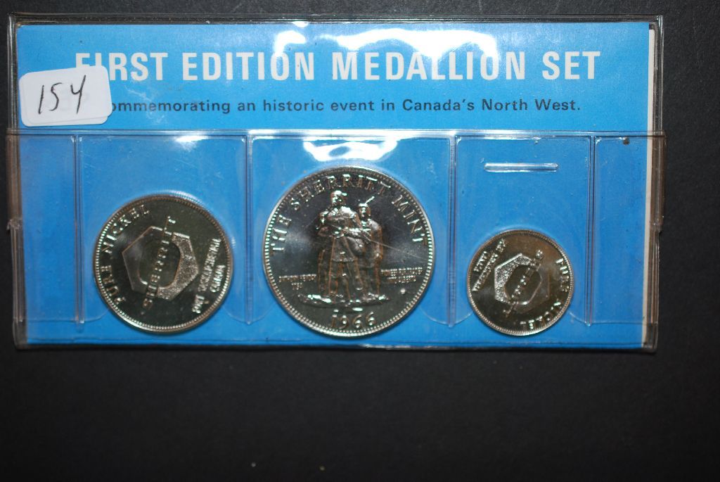 1966 Canada First Edition Medallion Mint Set Commemorating Anthony Henday-Fur Trader Into Alberta Canada; Lot of 3 Coins; Pure Nickel; The Sherritt Mint; EST. $5-10