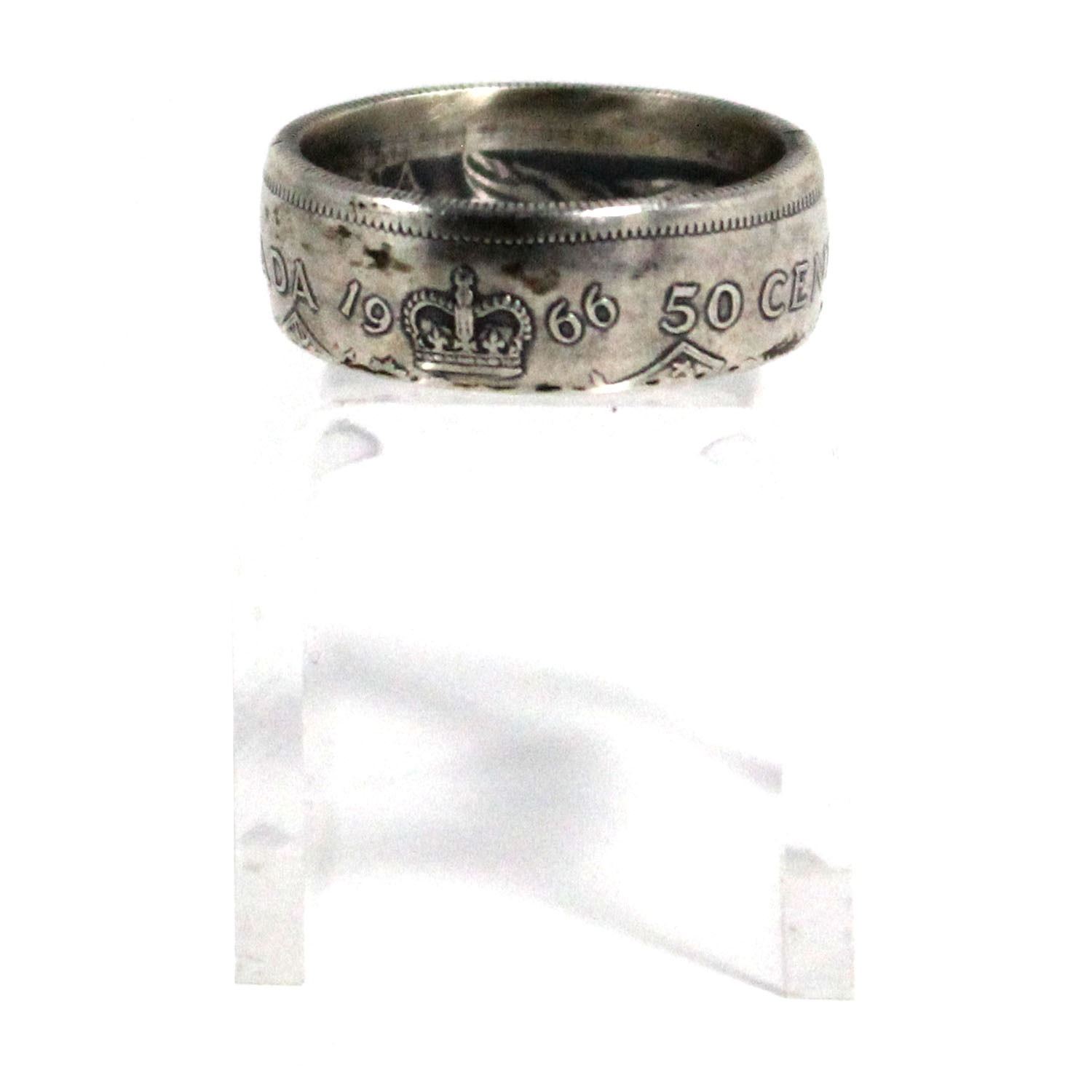 1966 Canada Silver 50ct Coin Custom Jewellery Ring Size 10 - Made from a real 50-cent coin!