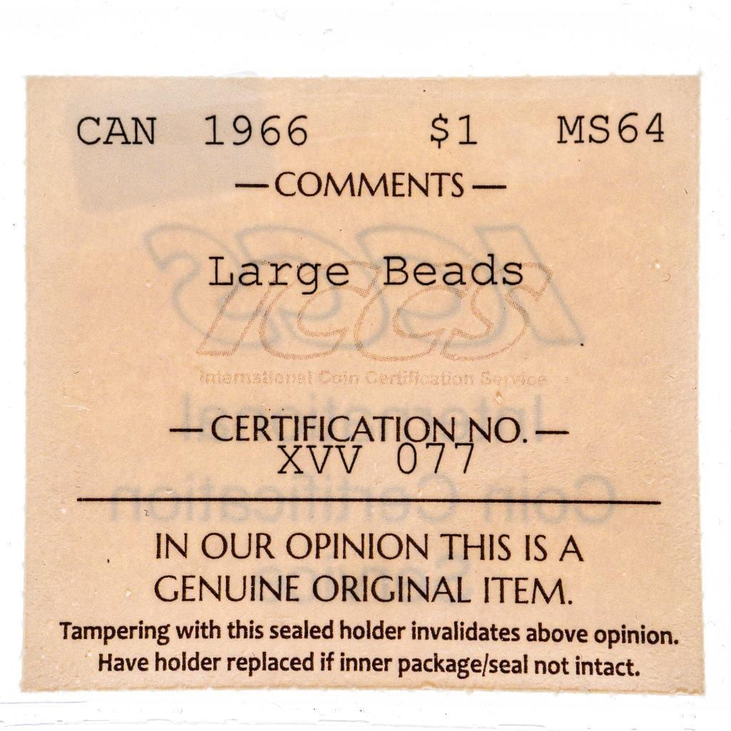 1966 Canada Silver Dollar MS64 ICCS