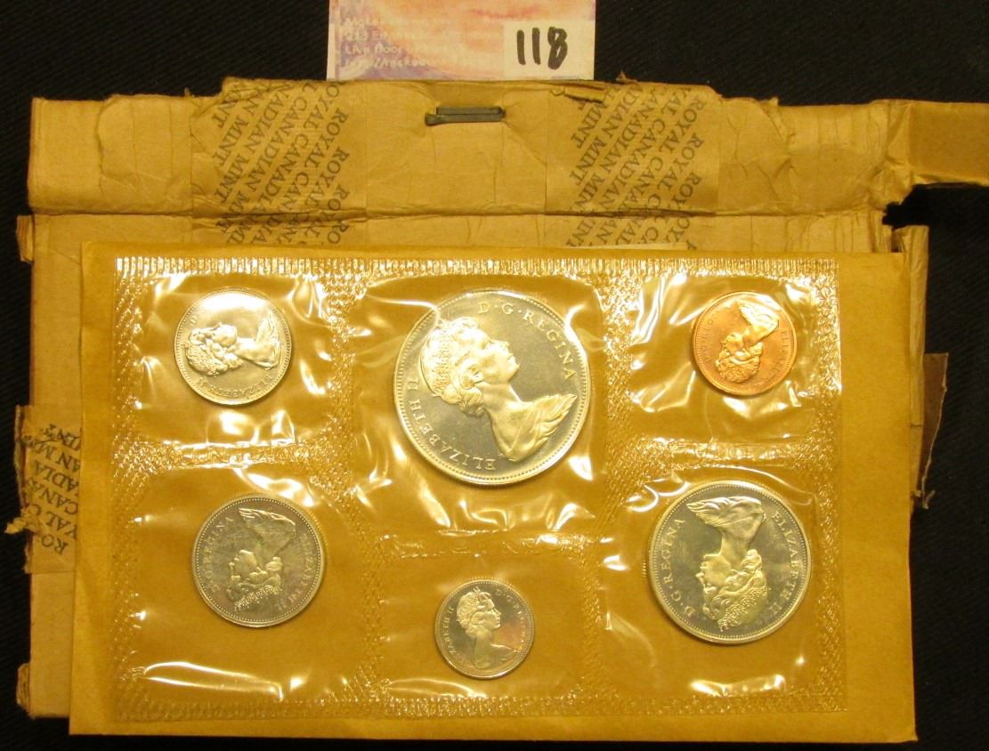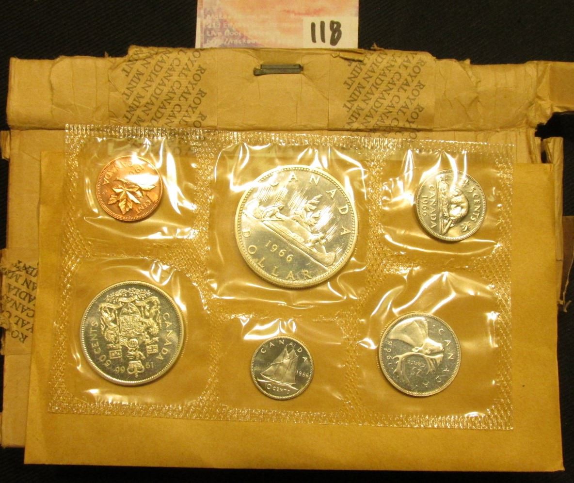 1966 Canada Uncirculated Coin Mint Set in original cellophane, envelope, and shipping box as issued.