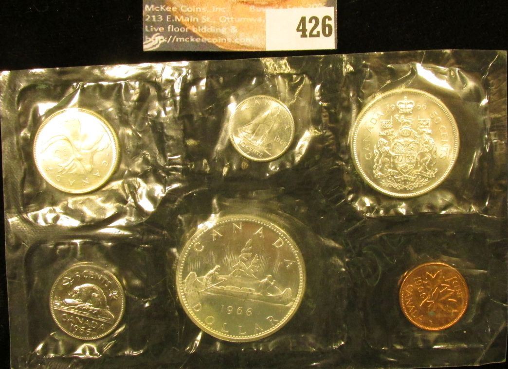 1966 Canada six-piece Mint Set with .800 Fine Silver Voyageur Dollar in original cellophane as issued, no envelope.