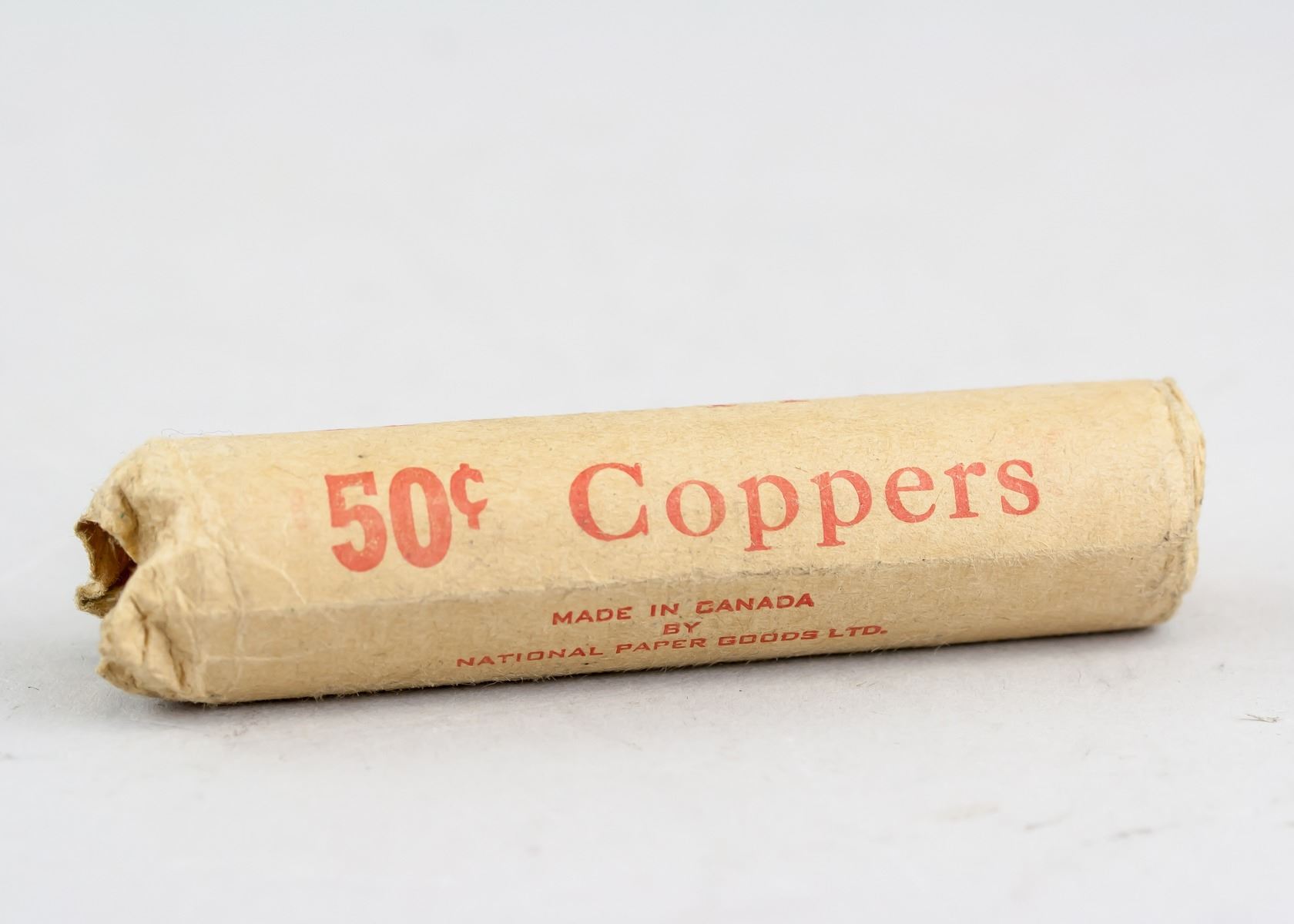 One (1) roll (50 PC)of 1966 Canadian 1 cent bronze coin. Uncirculated condition. Obverse engraved the portrait in right profile of Elizabeth II. Lettering ELIZABETH II D·G·REGINA. Reverse engraved maple. Lettering 1 CENT, 1966, KG, CANADA. KM-59. D: 1.8 cm, 159 grams