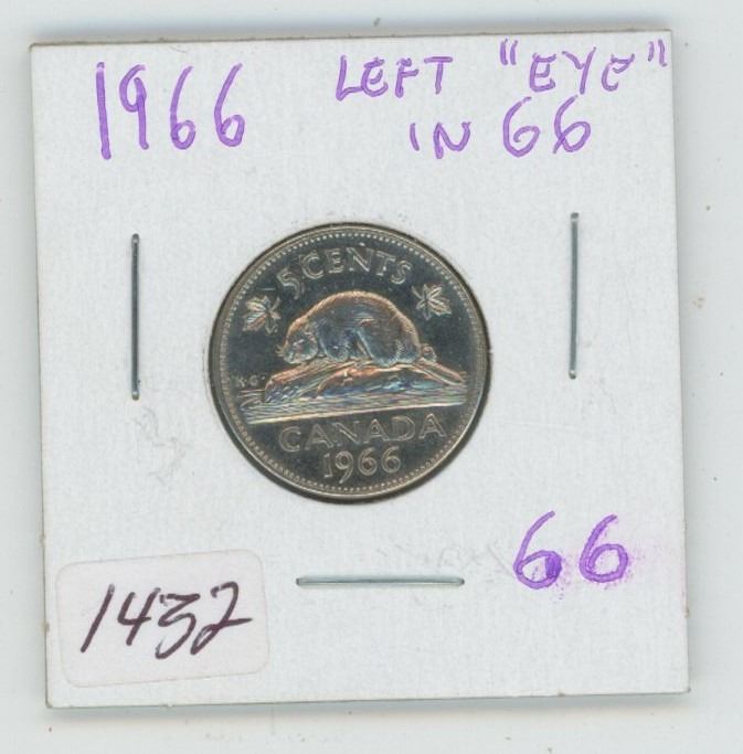 1966 Canadian 5 Cent Coin (Left "Eye" in 66)