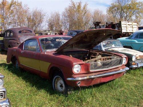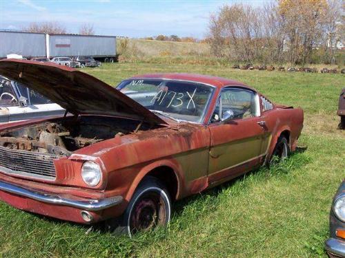Description: RED MUSTANG, NO MTOR OR TRANS, BLACK BUCKETS, SHAG CARPET, INTERIOR ROUGH- HAS RUST