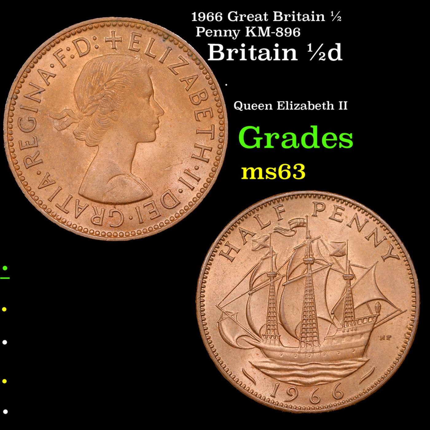 1966 Great Britain 1/2 Penny KM-896 Grades Select Unc.