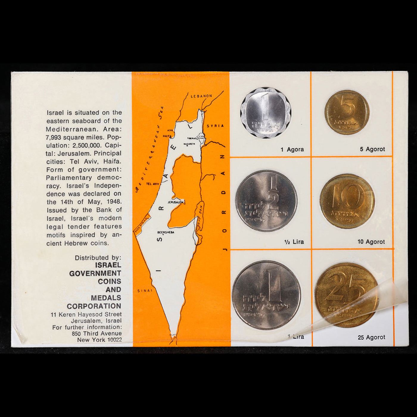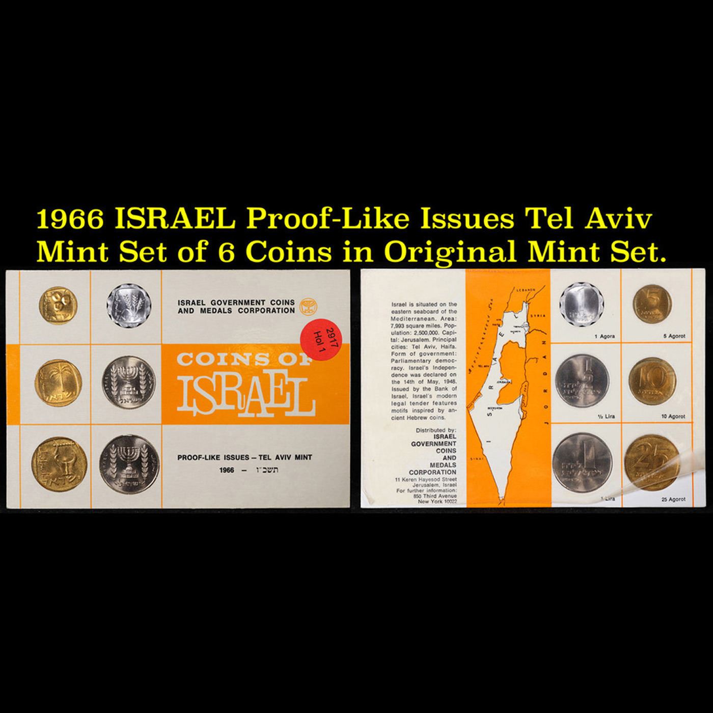 1966 ISRAEL Proof-Like Issues Tel Aviv Mint Set of 6 Coins in Original Mint Set.. Official Mint Set of 1966. Includes 1 Lira, 1/2 Lira, 25 Agorot, 10 Agorot, 4 Agorot, and 1 Agora. Proof-like issues from the Tel Aviv Mint.