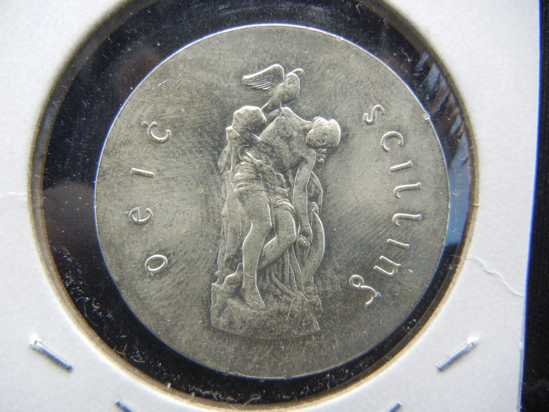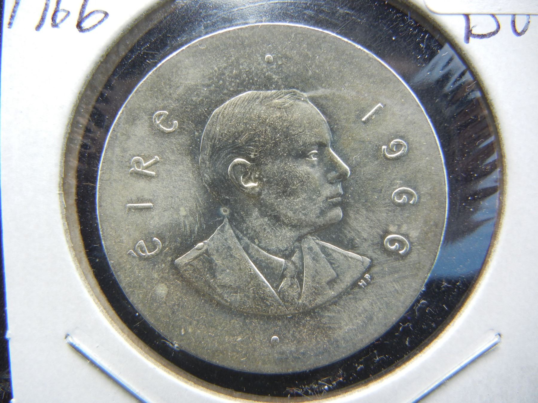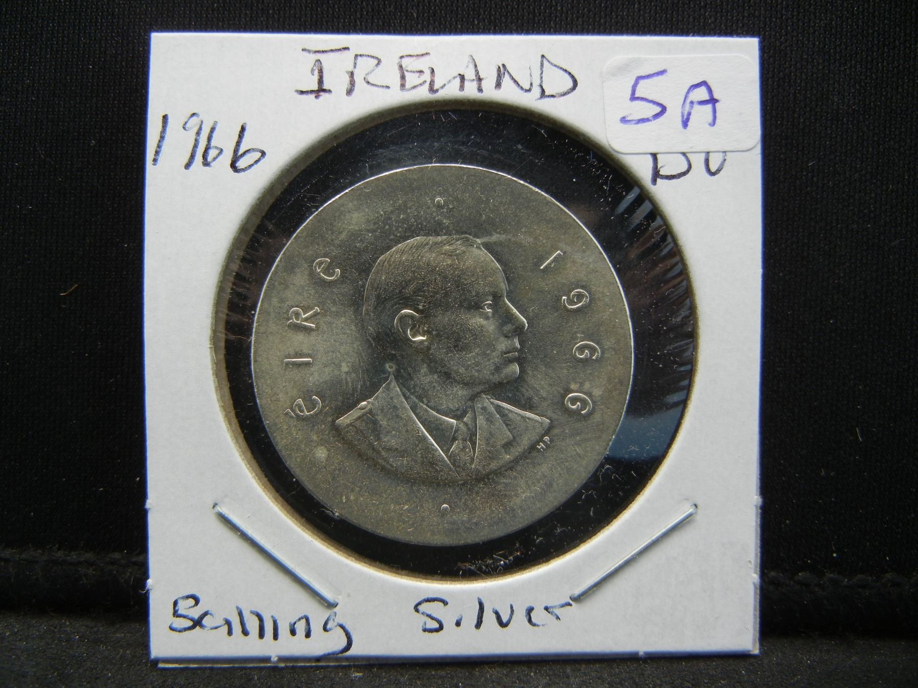 1966 Ireland Shilling. Half dollar sized silver coin. Brilliant Uncirculated.
