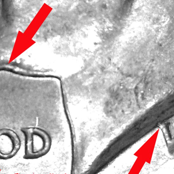 Nice piece; RARE strong obverse double die chin & WE TRUST; $40BV