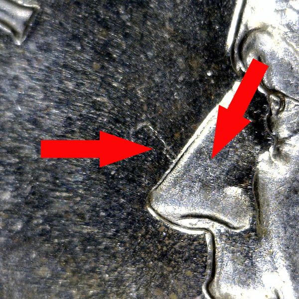 Nice piece; RARE strong obverse double die chin ear & WE TRUST; reverse double die stars; reverse struck thru debris; $200BV