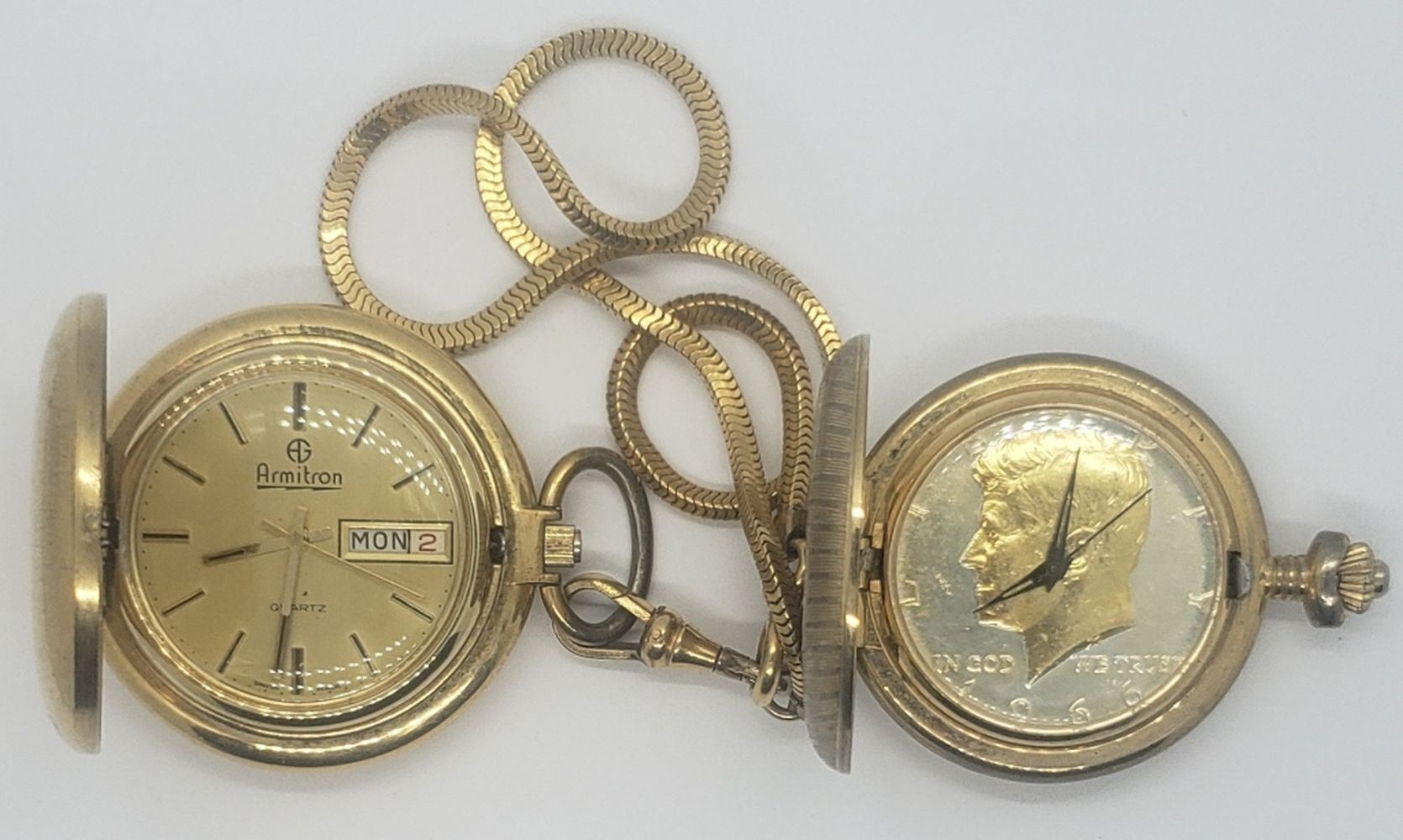 & ARMITRON QUARTZ POCKET WATCH (KENNEDY RUNNING w/NEW BATTERY but MISSING BOW)