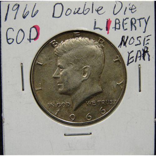 1966 U.S. KENNEDY HALF DOLLAR. Double die.