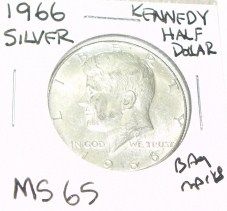 1966 KENNEDY SILVER HALF DOLLAR *EXTREMELY RARE MS-65 HIGH GRADE* Bag Marks!! ***Coin, Currency & All Items Listed in this auction - Grades, Conditions and Values are not Safe Deposit Coins LLC Responsibilty. Grades, Condition and Values are determined by Consigner(s) & Buyers.