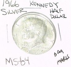 1966 KENNEDY SILVER HALF DOLLAR *RARE MS-64 HIGH GRADE Bag Marks*!! ***Coin & Currency Grades, Conditions and Values are not Northern Colorado Estate Liquidators Responsibilty. Grades, Condition and Values are determined by Consigner(s) & Buyers ONLY***