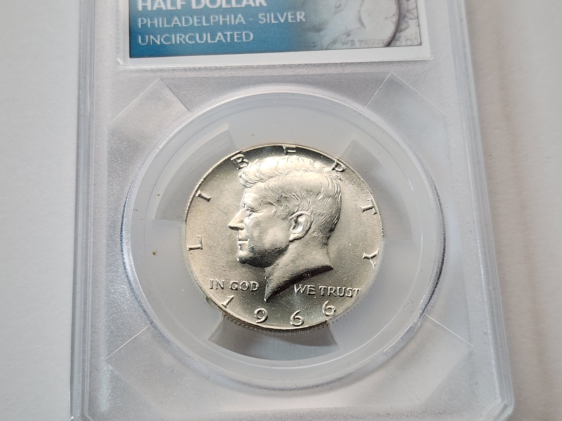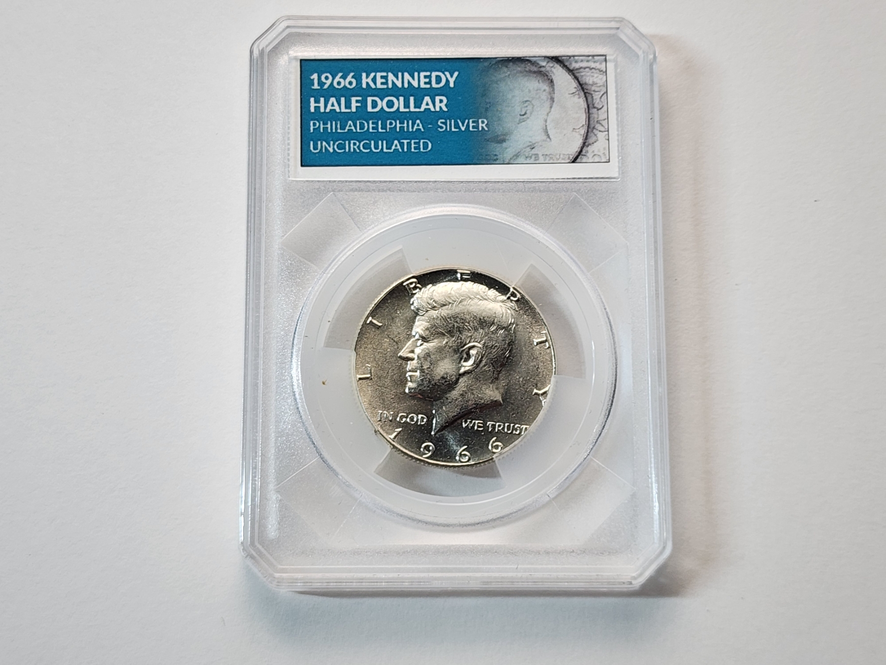 1966 Kennedy Half Dollar 40% Silver Uncirculated Coin in Slab