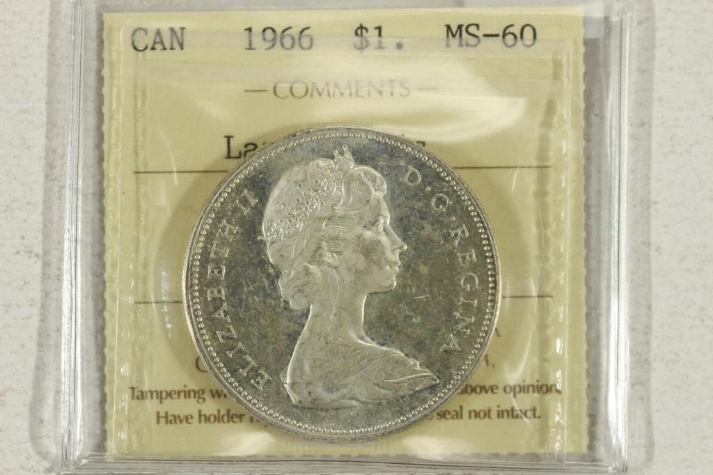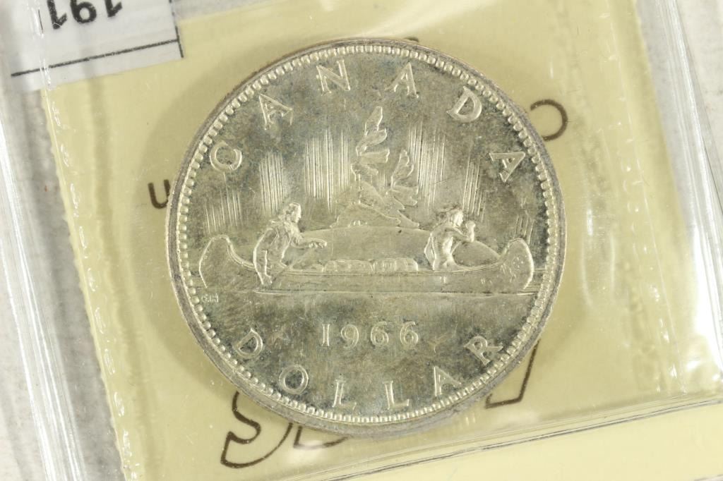 1966 LARGE BEADS CANADA SILVER DOLLAR ICCS MS60