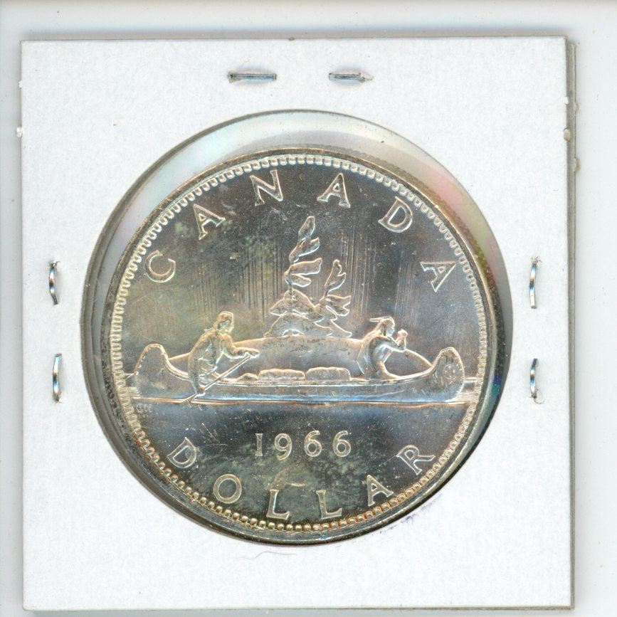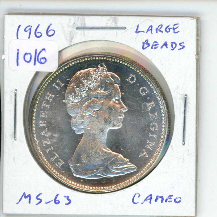 1966 Large Beads Canadian Silver Dollar. MS-63 with Cameo.