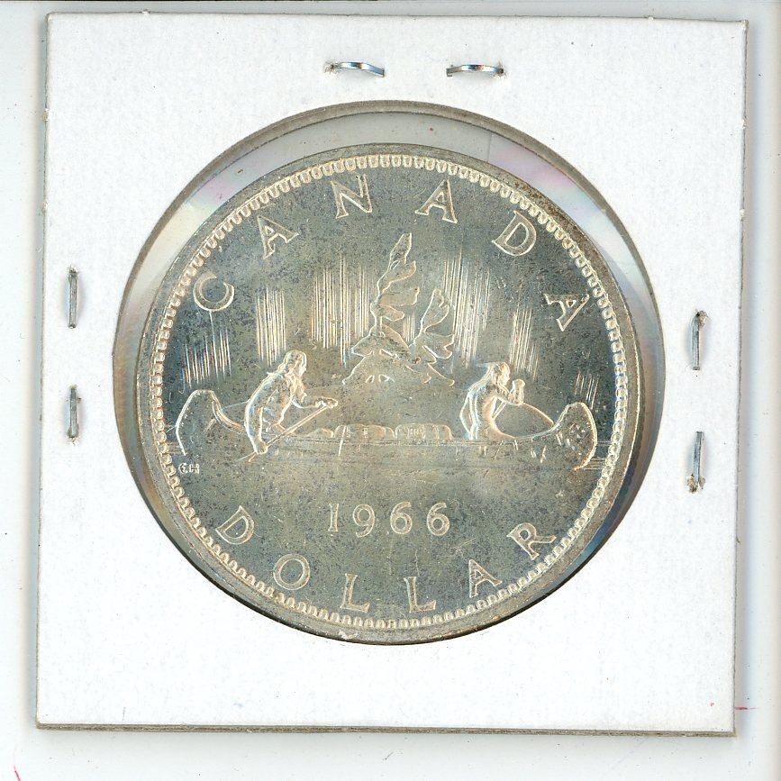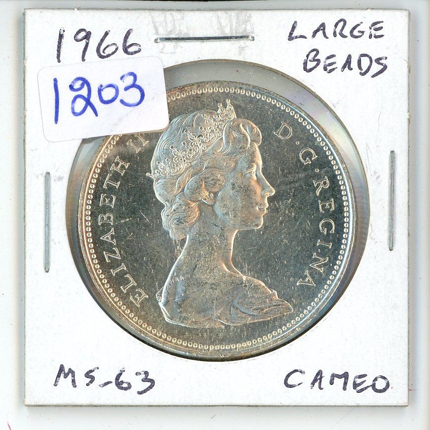 1966 Large Beads Canadian Silver Dollar. MS-63 with Cameo.