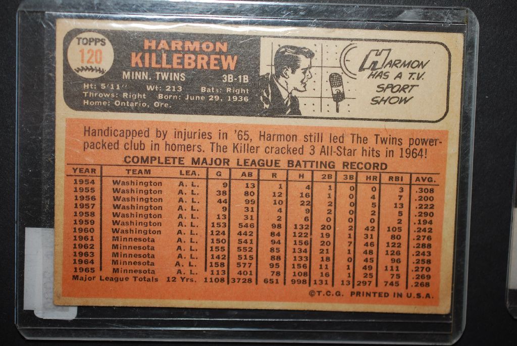 1966 MLB Harmon Killebrew Minnesota Twins Baseball Trading Card; EST. $5-10