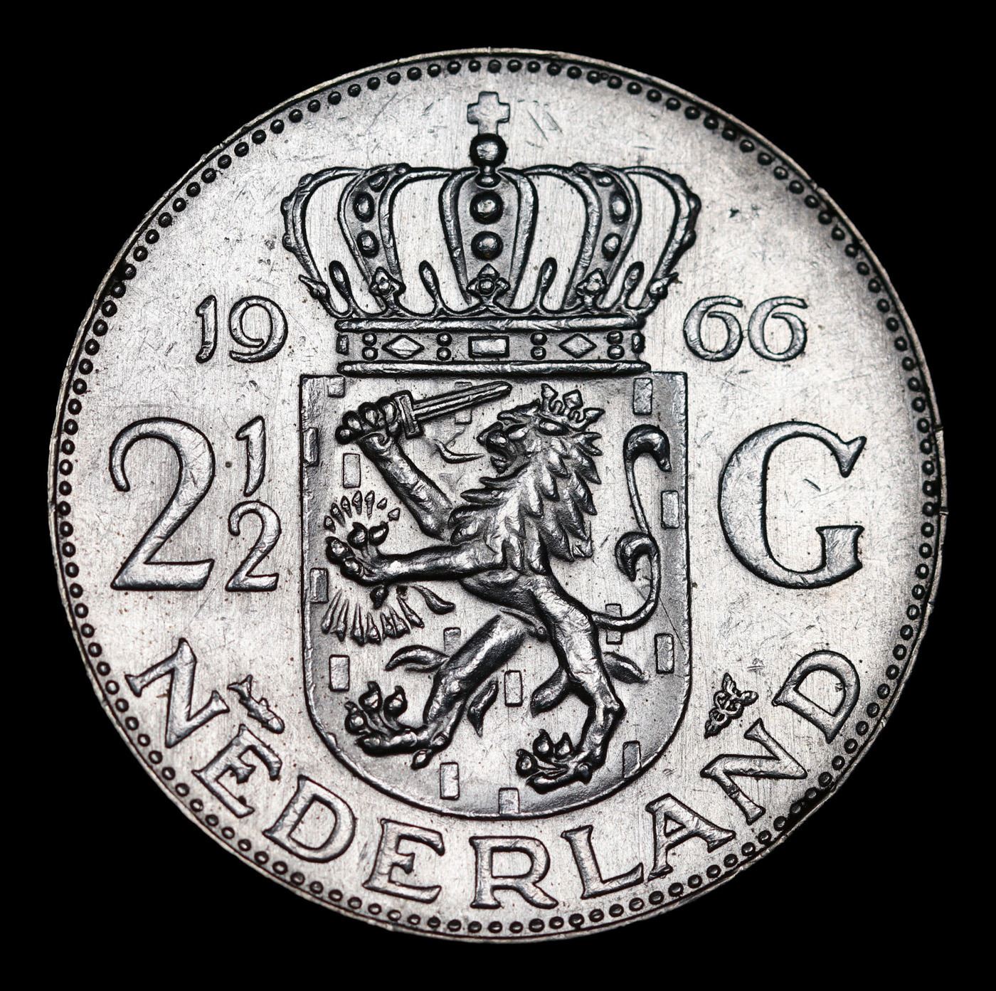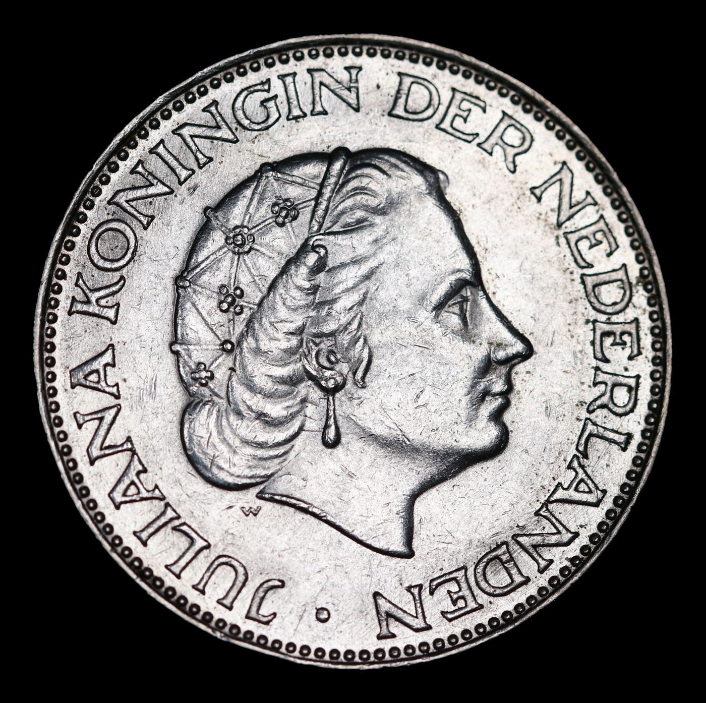1966 Netherlands 2 1/2 Gulden Silver KM# 185 Grades Select Unc.