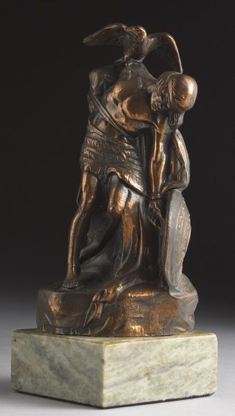 1966 official small scale sculpture of 'The Dying Cúchulainn' by Oliver Sheppard. Manufactured under license from The Commissioner of Public Works. Mounted of Connemara marble and with scarce original tag which accompanied the sculpture when sold. The large scale version is located today in the G.P.O.