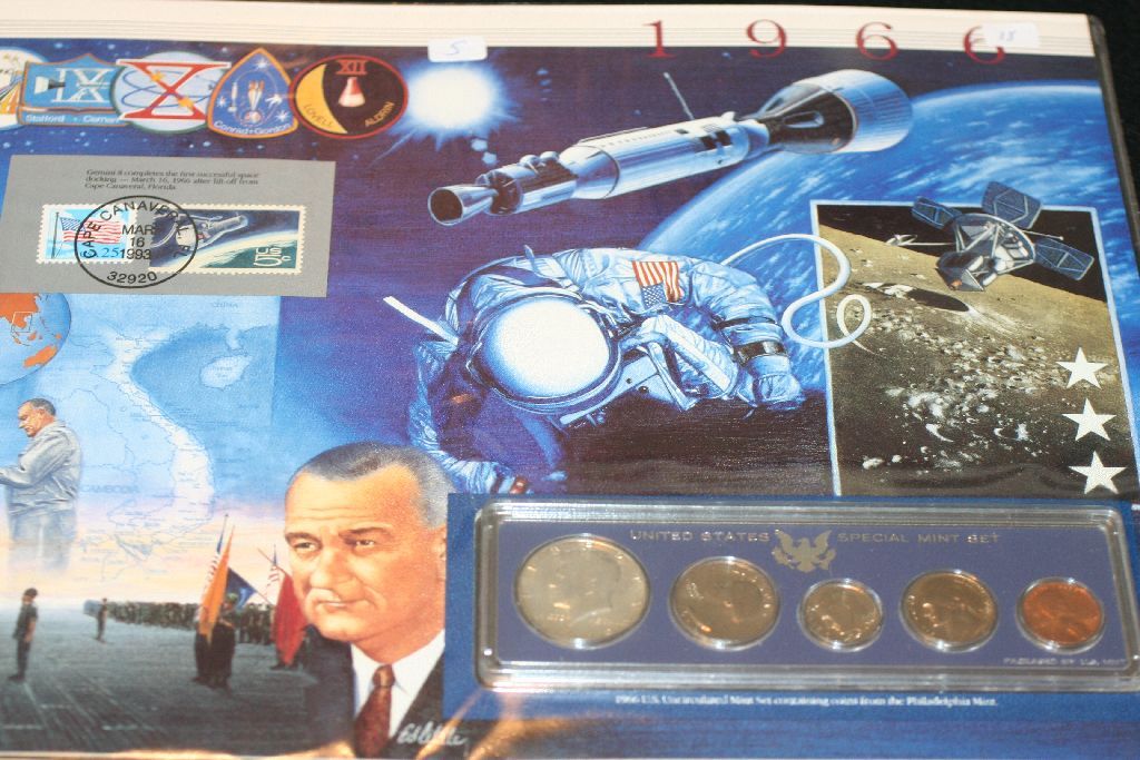 1966-P US Special Mint Set W/Postal Stamp Commerating Gemini 8 Completes First Successful Space Docking Dated 1993; UNC