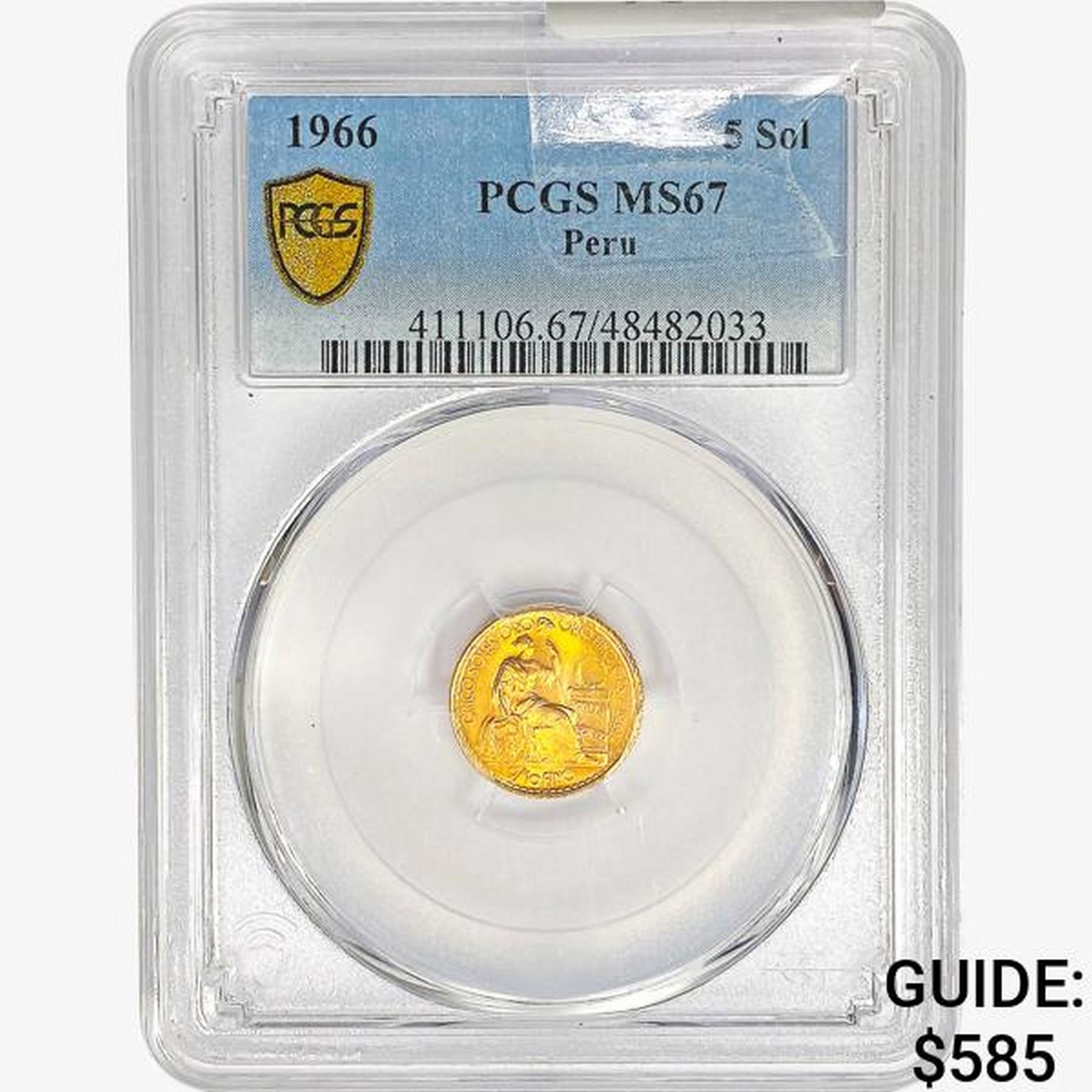 1966 Peru 5 Soles .0677oz. Gold PCGS MS67