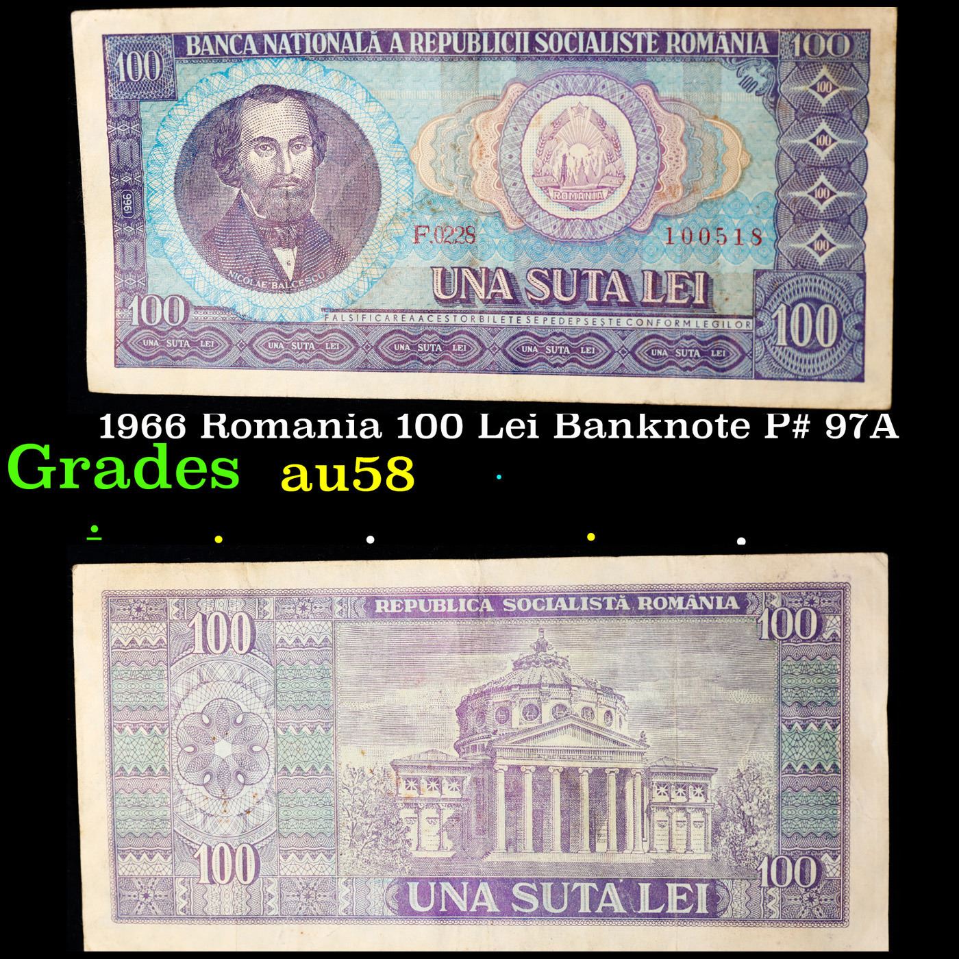1966 Romania 100 Lei Banknote P# 97A Grades Choice AU/BU Slider.