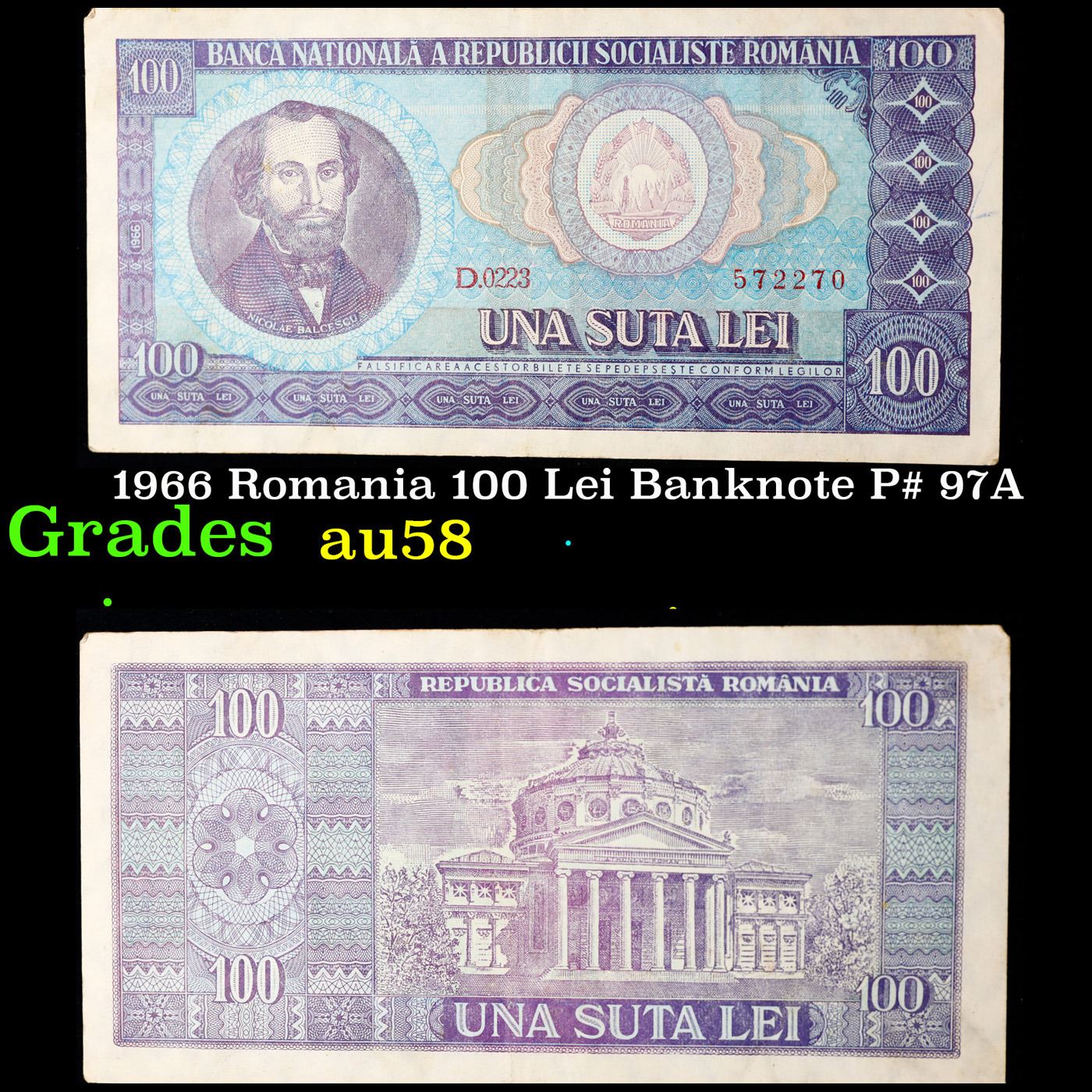 1966 Romania 100 Lei Banknote P# 97A Grades Choice AU/BU Slider.
